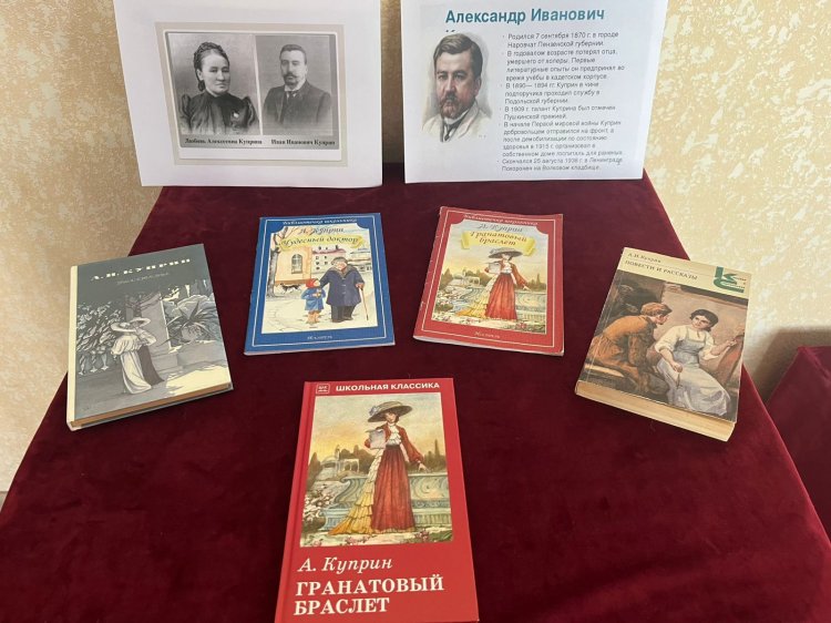 К этой памятной дате в Ногайской районной библиотеке подготовлена книжная выставка «Воспевший любовь». Читатели могут познакомятся с обширным творчеством писателя. Среди представленных на выставке книг повести «Олеся», «Чудесный доктор», «Гранатовый браслет», рассказы и другие произведения. Выставка доступна широкому кругу читателей, и тем, кто хорошо знаком с творчеством Куприна, и тем, кто только собирается прикоснуться к жемчужинам русской классики.