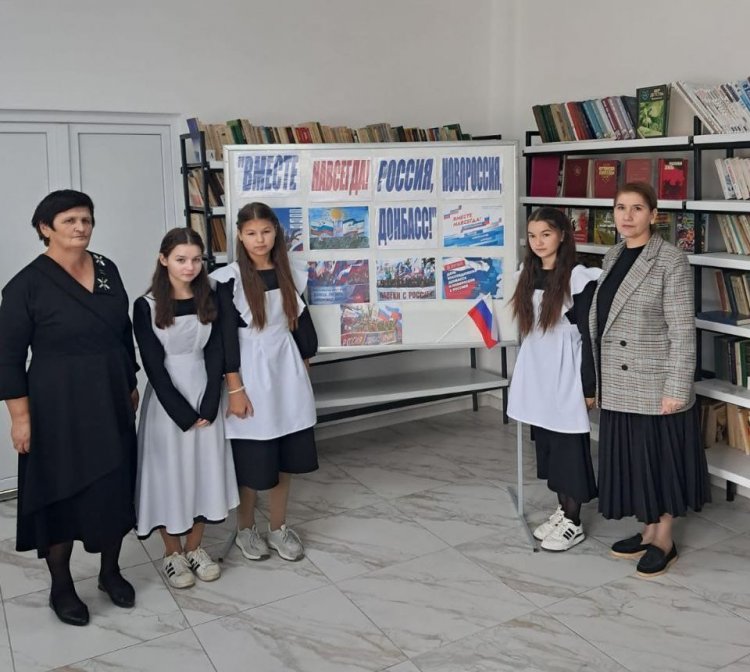 Сотрудники библиотек СДК а. Эркен-Юрт и х. Евсеевский провели для учеников 7 класса МБОУ СОШ а. Эркен-Юрт информационную беседу «Вместе навсегда! Россия, Новороссия, Донбасс!». Ребята совершили краткий экскурс в историю и узнали о событиях, связанных с вхождением новых регионов в состав Российской Федерации. Благодаря референдумам, которые прошли несколько лет назад, была восстановлена историческая справедливость. Выбор, сделанный жителями Донецкой и Луганской народных республик, Запорожской и Херсонской областей, ознаменовал начало новой исторической эпохи.
